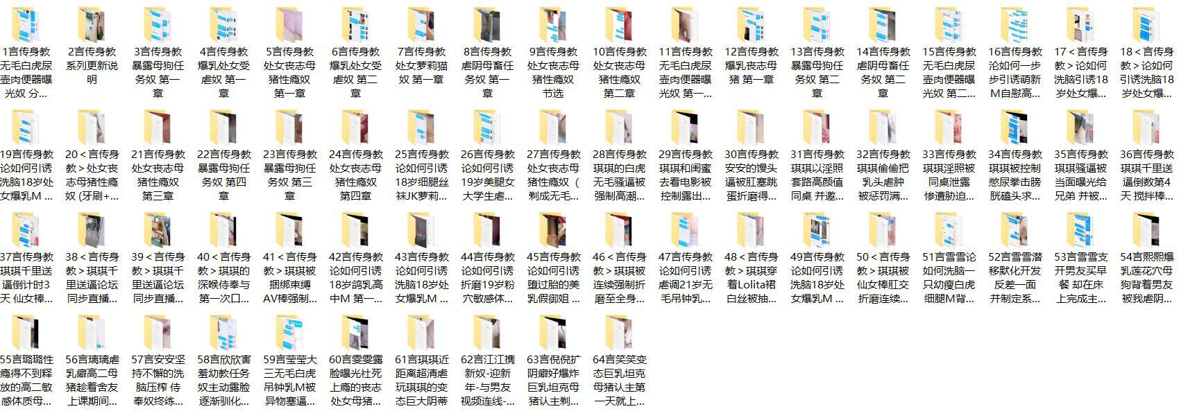 最新流出极品调教作品,封神调教入圈10年大神调教多位年轻妹妹,各种调教女奴,都是年轻妹妹(学生妹居多),发帖一年共计64贴内容,34部视频+2389张图,每贴都有几十张非常详细的调教记录。在我看来更像是调教教程。内容太多,无法一一展示,印象比较深刻的有一位妹子,连续高潮了16次,这体质也是牛逼了。具体内容不做过多描述了,回复看截图,文件夹名字有简单概括