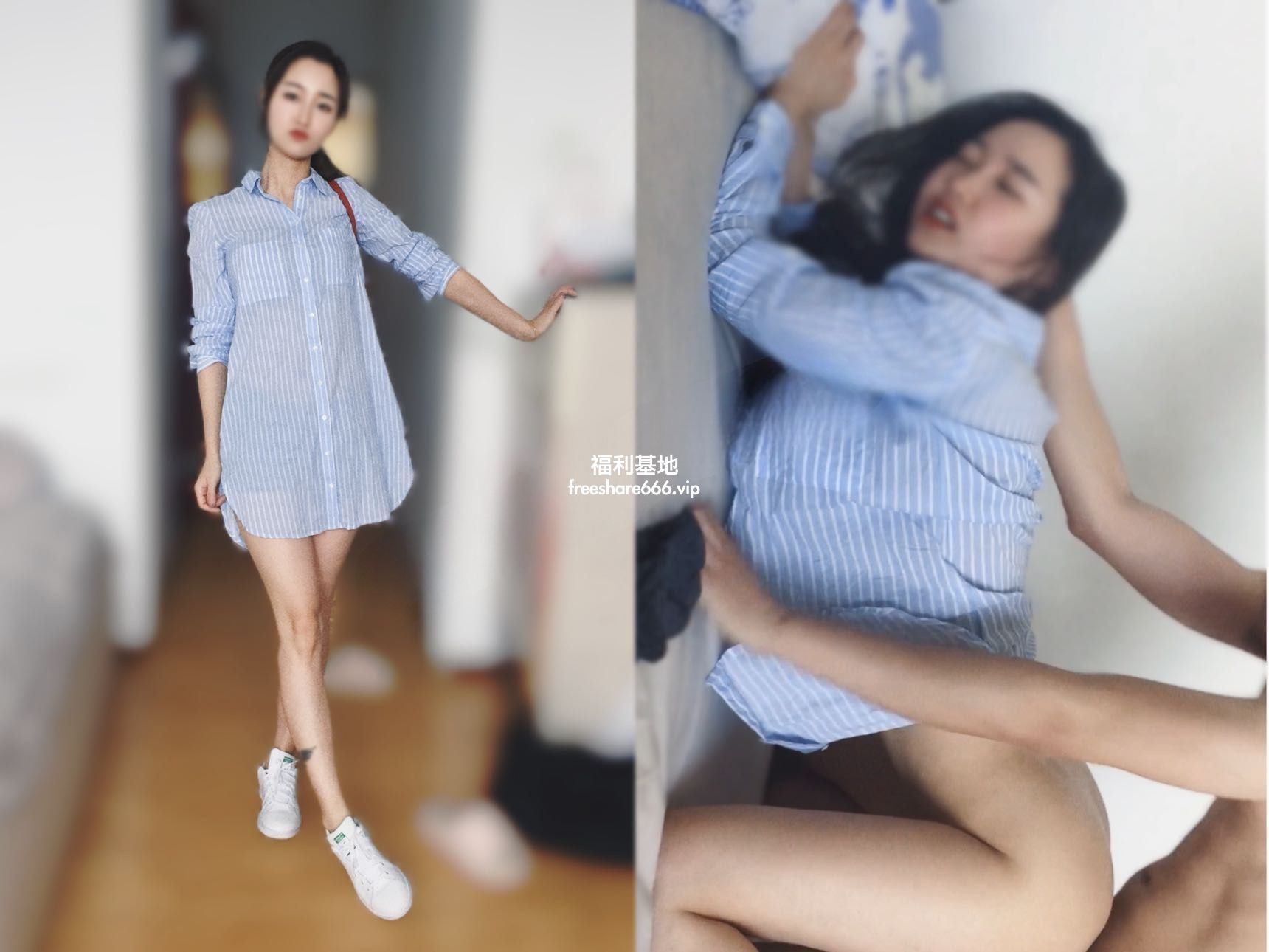 这次她小蓝衬衫搭配着超短裤、小白鞋,小白袜,看着就超级有感觉,废话不说