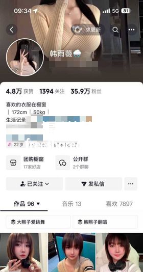 抖音36万粉丝网红韩雨薇预览