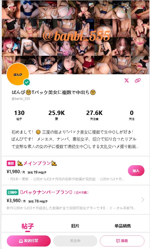 Myfans博主ばんびTバック美女に複数で中出ち@banbi_555自行付费订阅视频78部,3980日元订阅,价值RMB192元,某堂有一个46V版本,但是不全,本帖订阅视频截止2025.3.30号,内含原版4K视频78部,是目前全网最全版本。