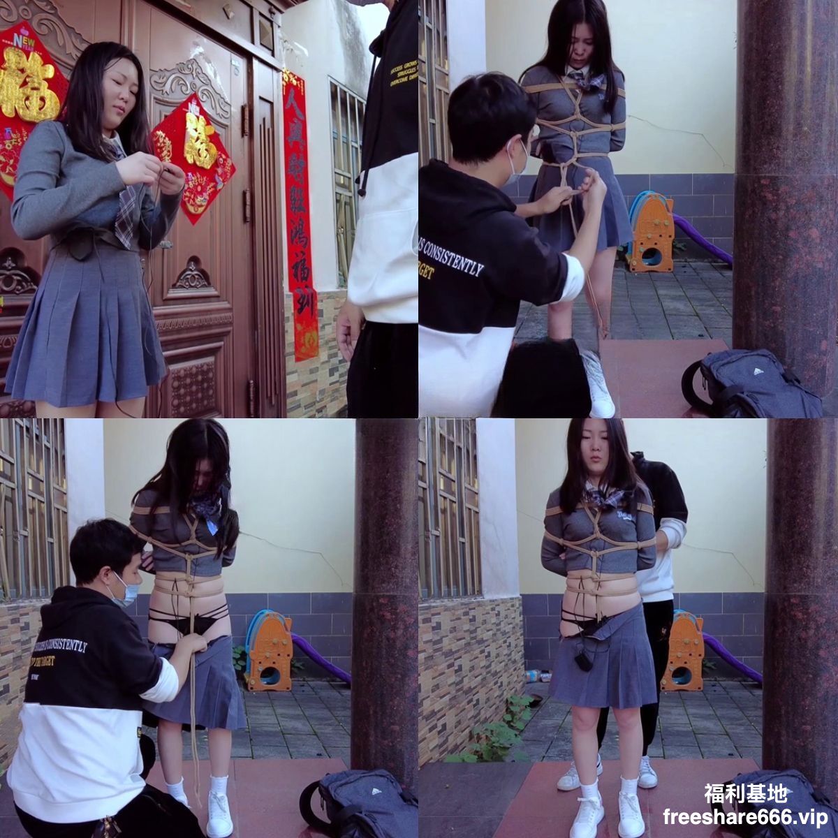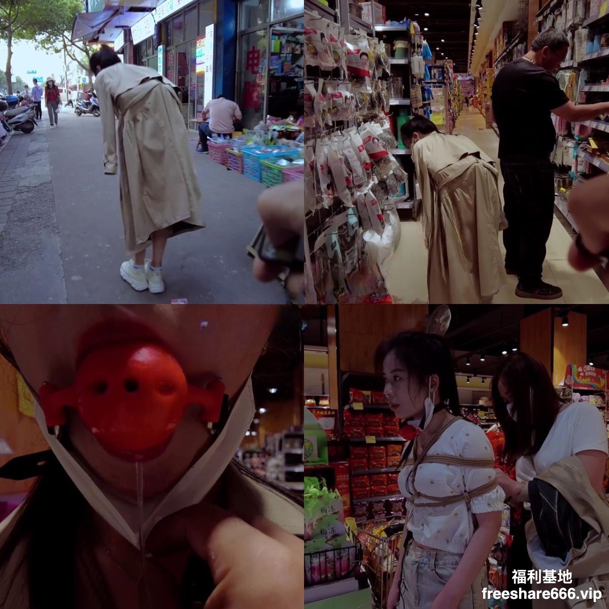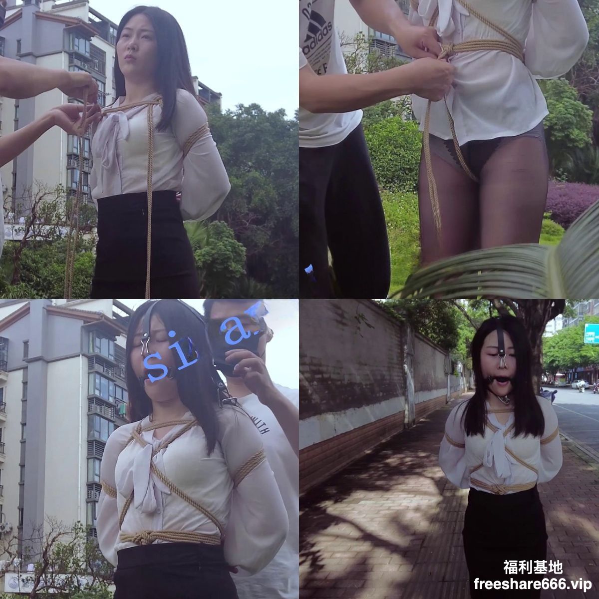 3.【户外挑战】户外挑战锻炼模特的胆量,要求寻找陌生人带上口球,并且在陌生人面前表演,最后还要去寻找陌生人解开自己身上的绳子