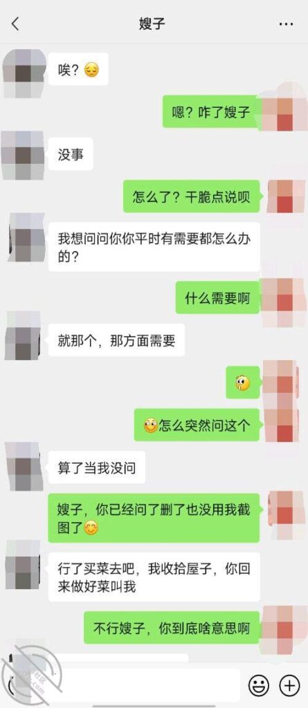 我第一个感觉就是我嫂子背着我大哥偷人了,第二个感觉是愤怒,我还没摘的桃子,让别的王八蛋给摘了,操!